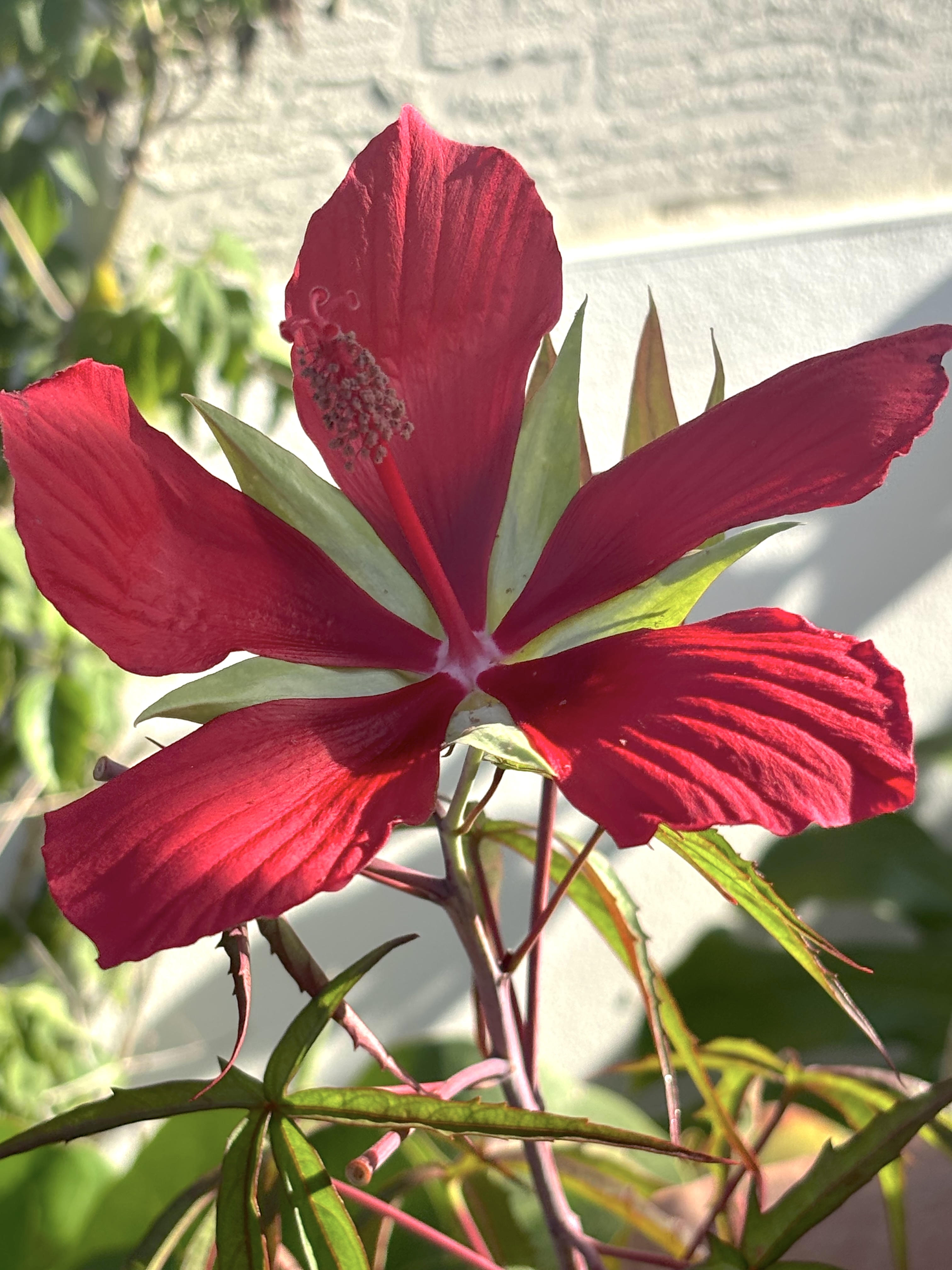 Age chats about an orchid, a FL native Scarlet Hibiscus (Hibiscus coccineus) is in bloom